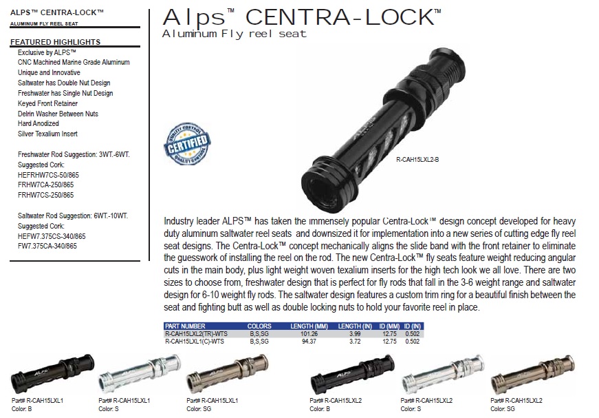 | Batson Alps Centra-Lock FLY Reel Seat | |  Batson Alps Centra-Lock FLY Reel Seat |