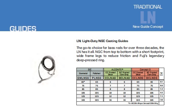 Fuji concept guides series LN are Double-foot guides widely used by manufacturers and custom builders as a strong, lightweight, multi-purpose casting guide.